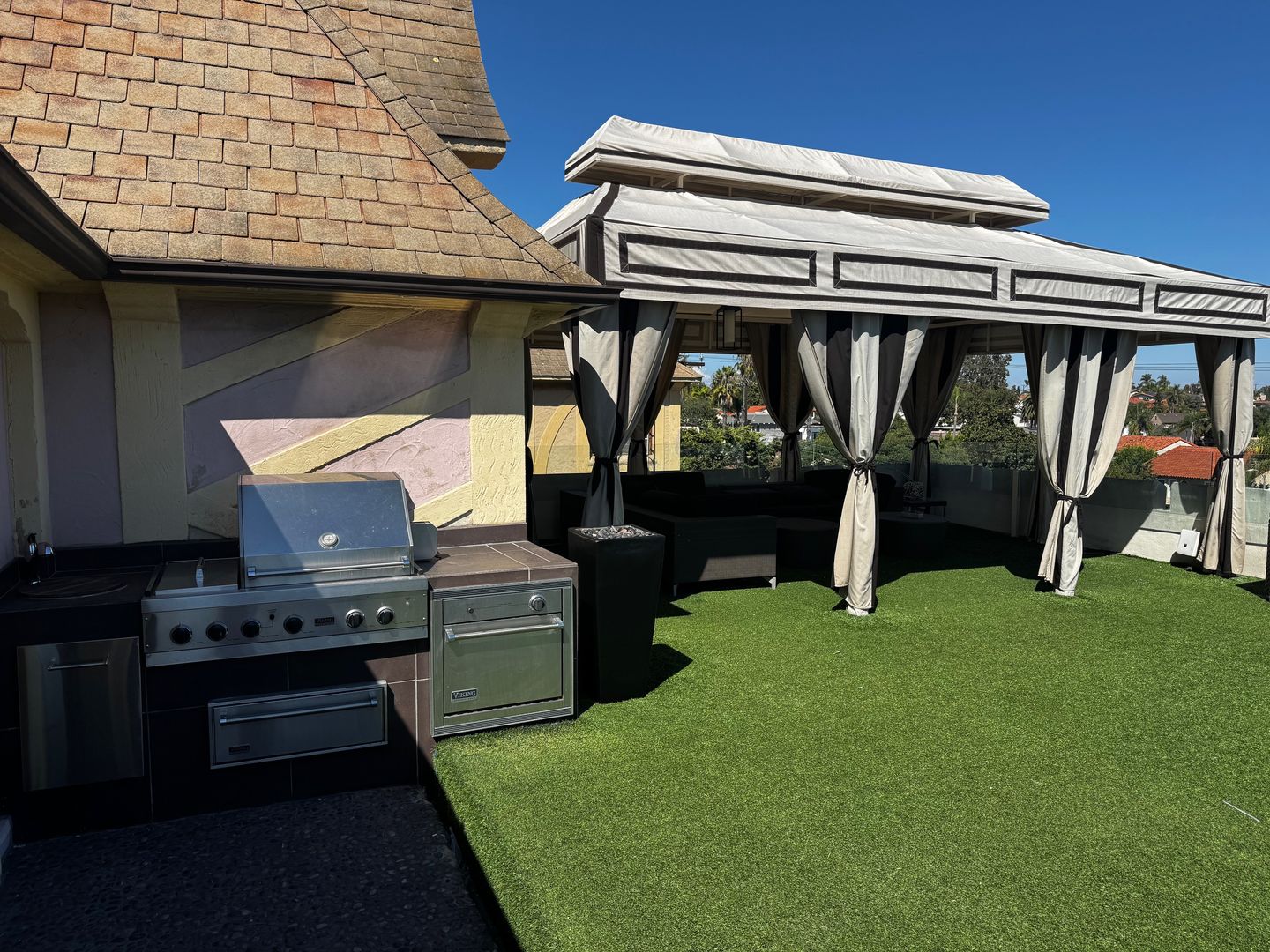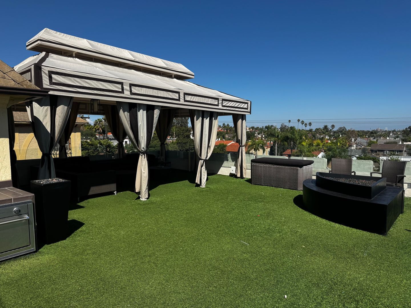 Step outside to your expansive private outdoor deck area, complete with a BBQ, cozy fire pit, and a covered gazebo—a rare retreat ideal for entertaining or unwinding beneath the Southern California sky.