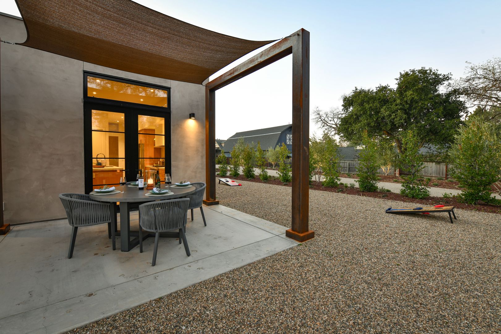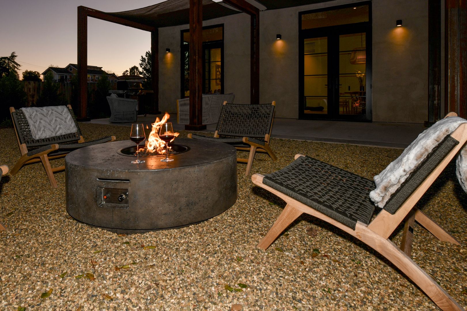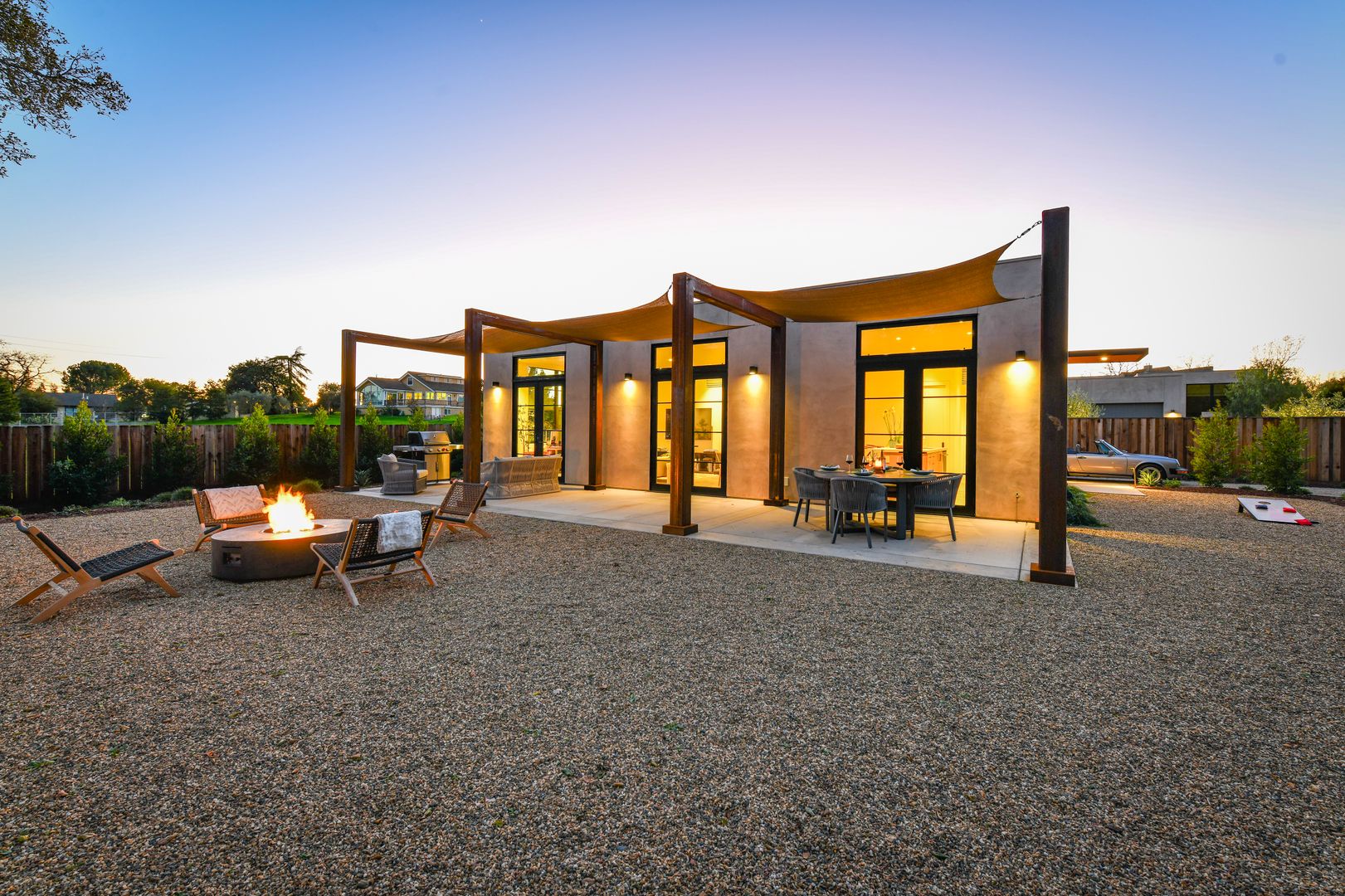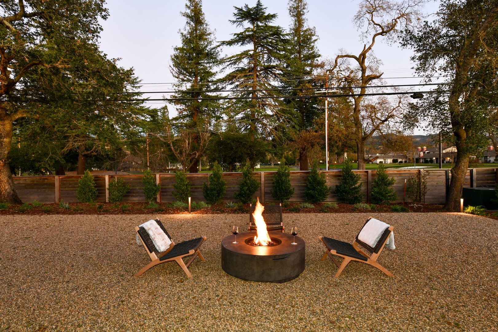 The sunlit living area welcomes you each morning with a warm and inviting atmosphere. Multiple sets of French doors open to an expansive private patio complete with dining table, lounge seating, BBQ, and firepit - ideal for alfresco dining or relaxing under the Napa stars.