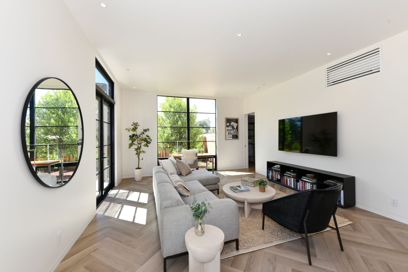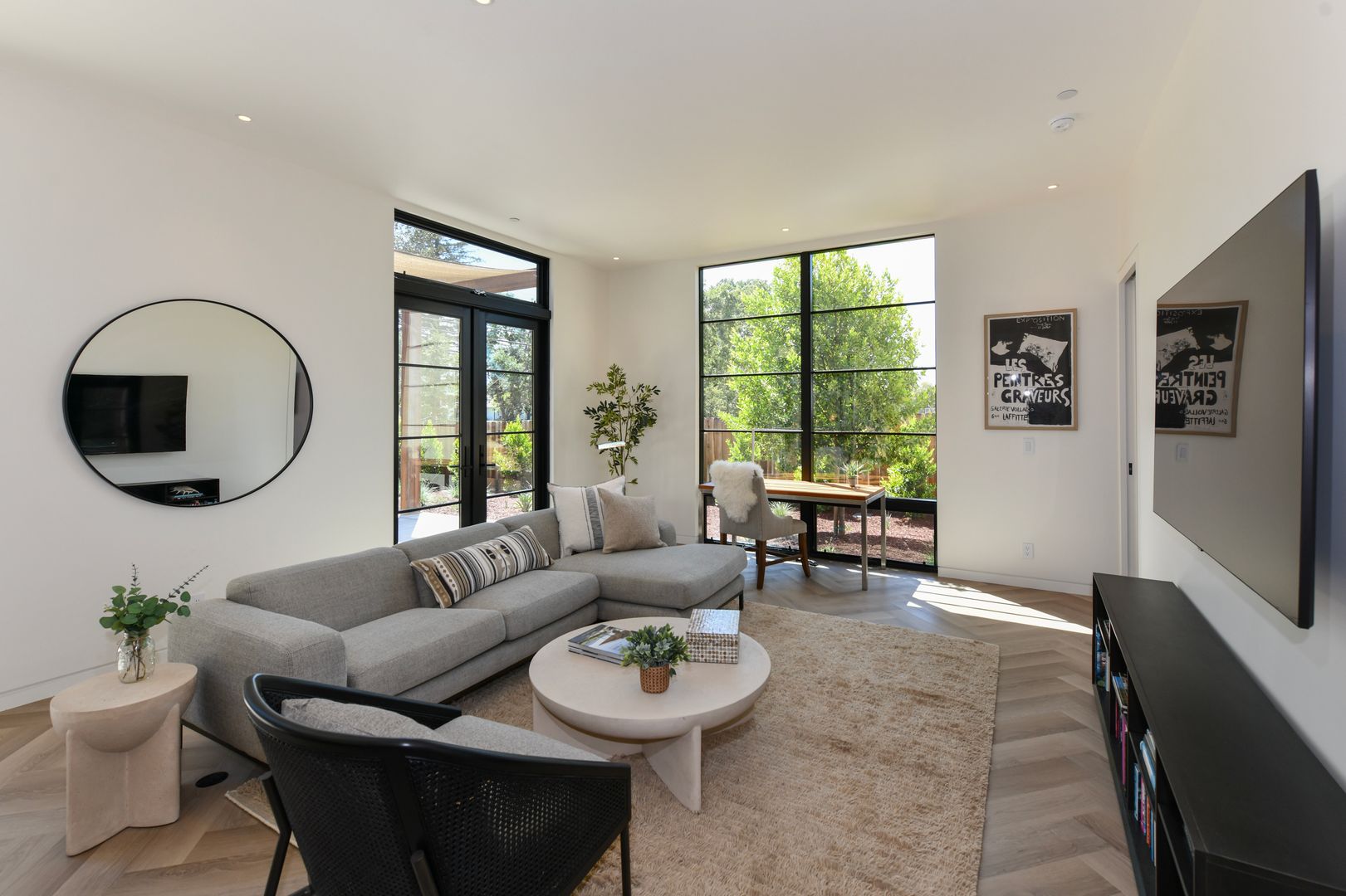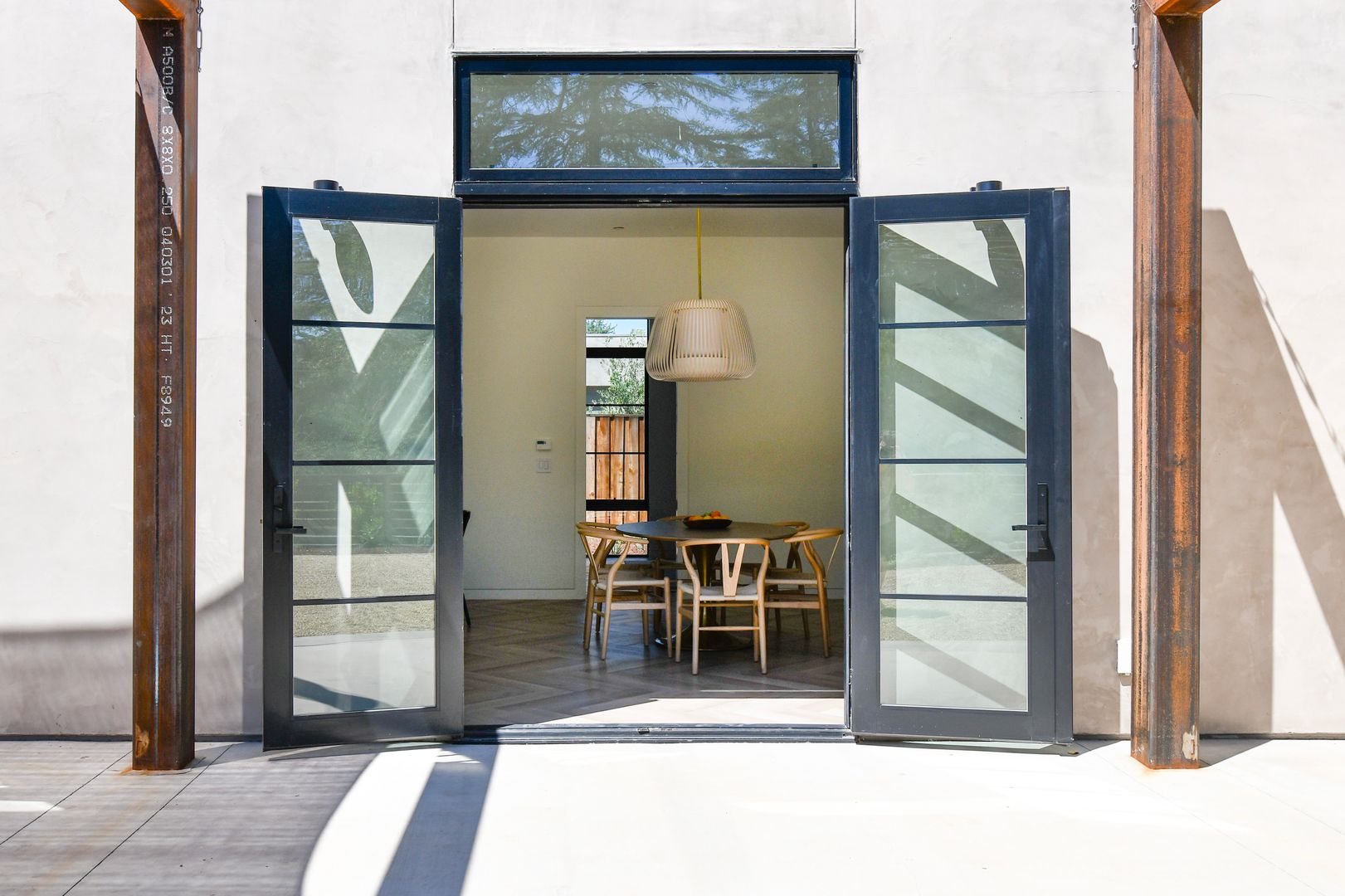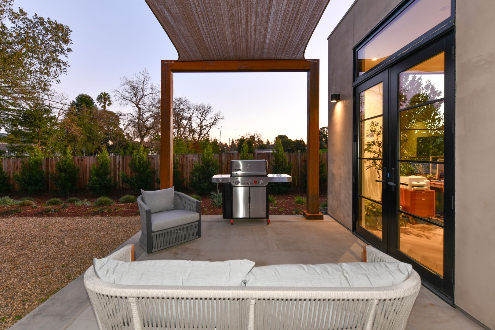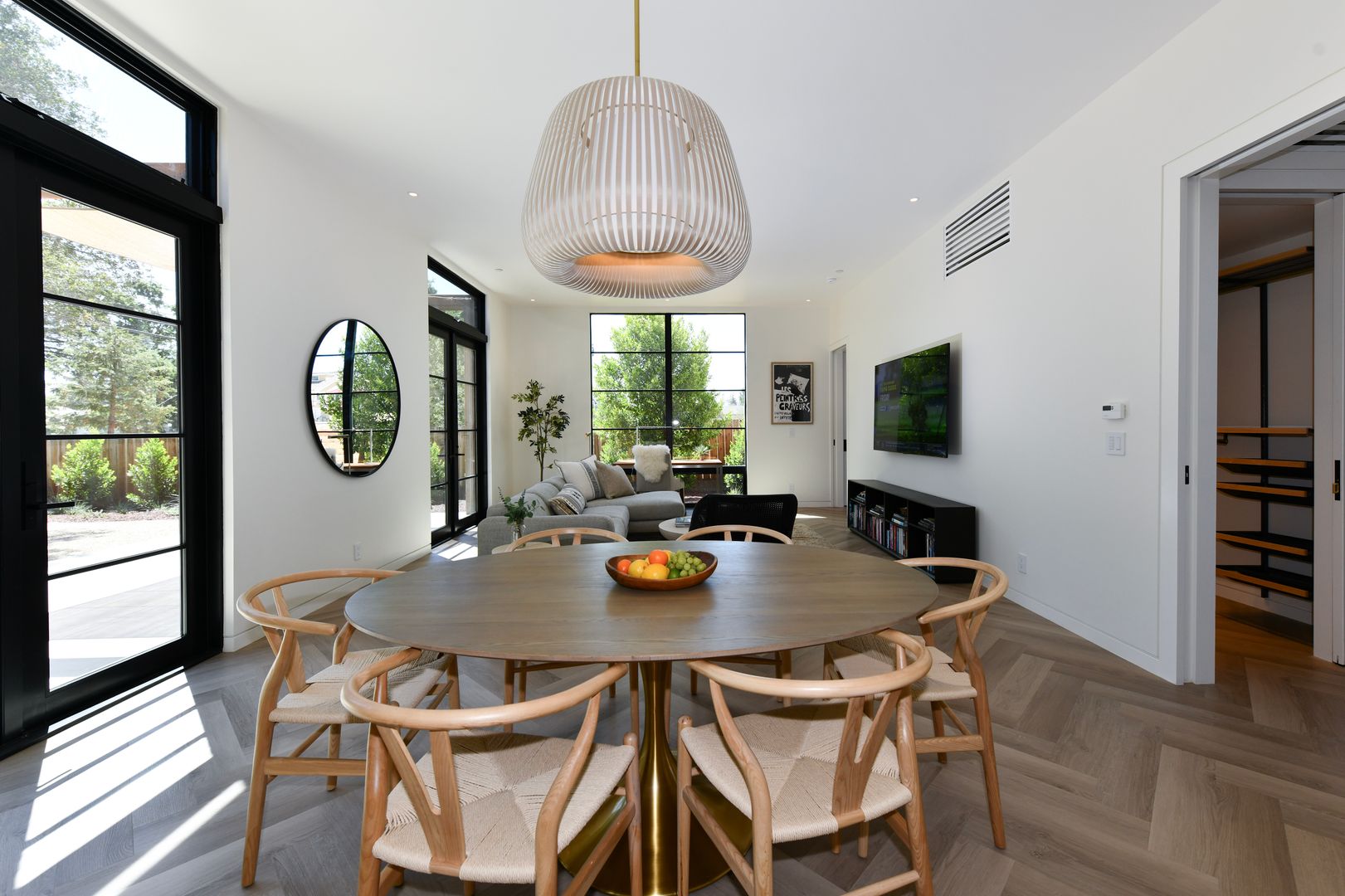 The sunlit living area welcomes you each morning with a warm and inviting atmosphere. Multiple sets of French doors open to an expansive private patio complete with dining table, lounge seating, BBQ, and firepit - ideal for alfresco dining or relaxing under the Napa stars.