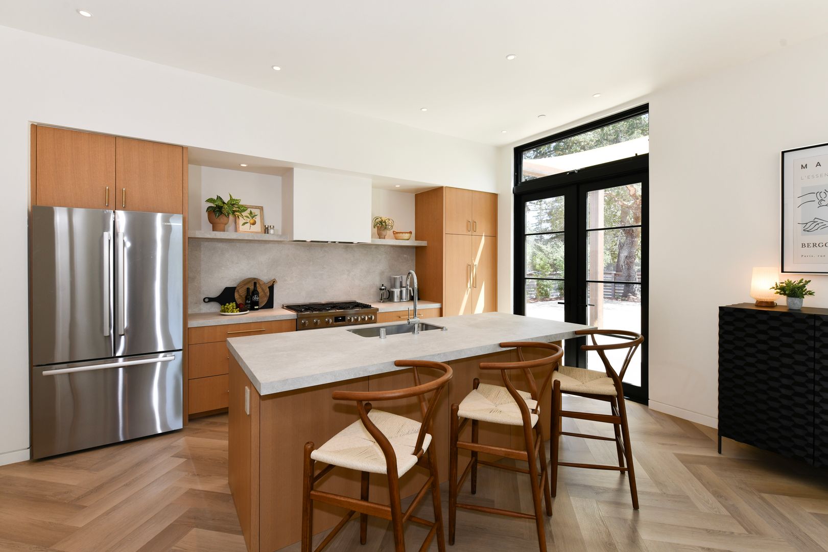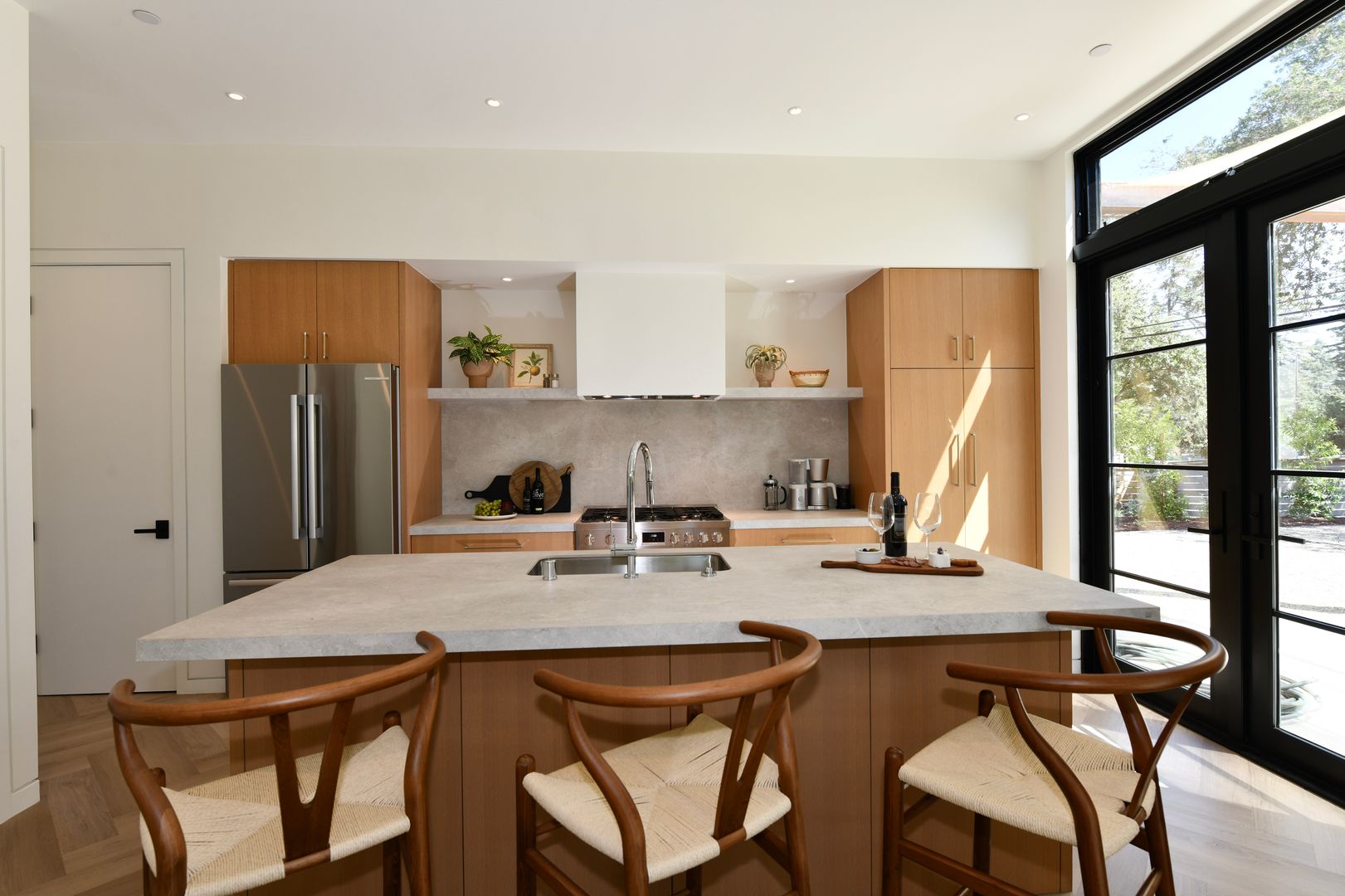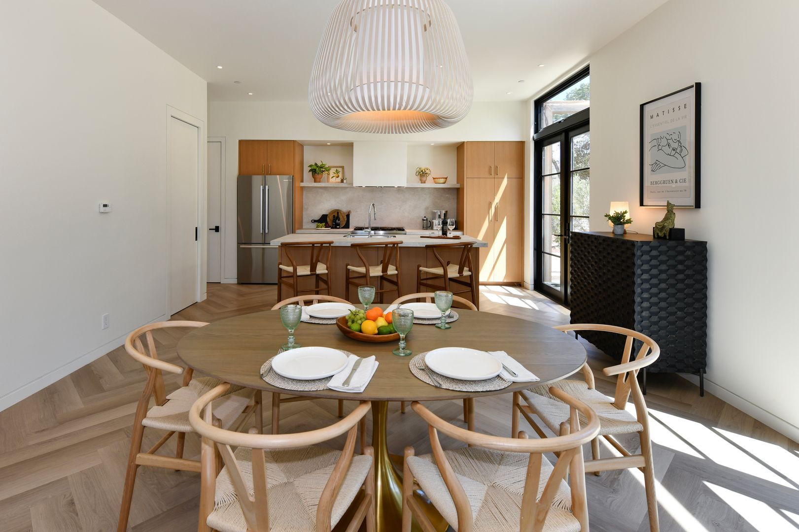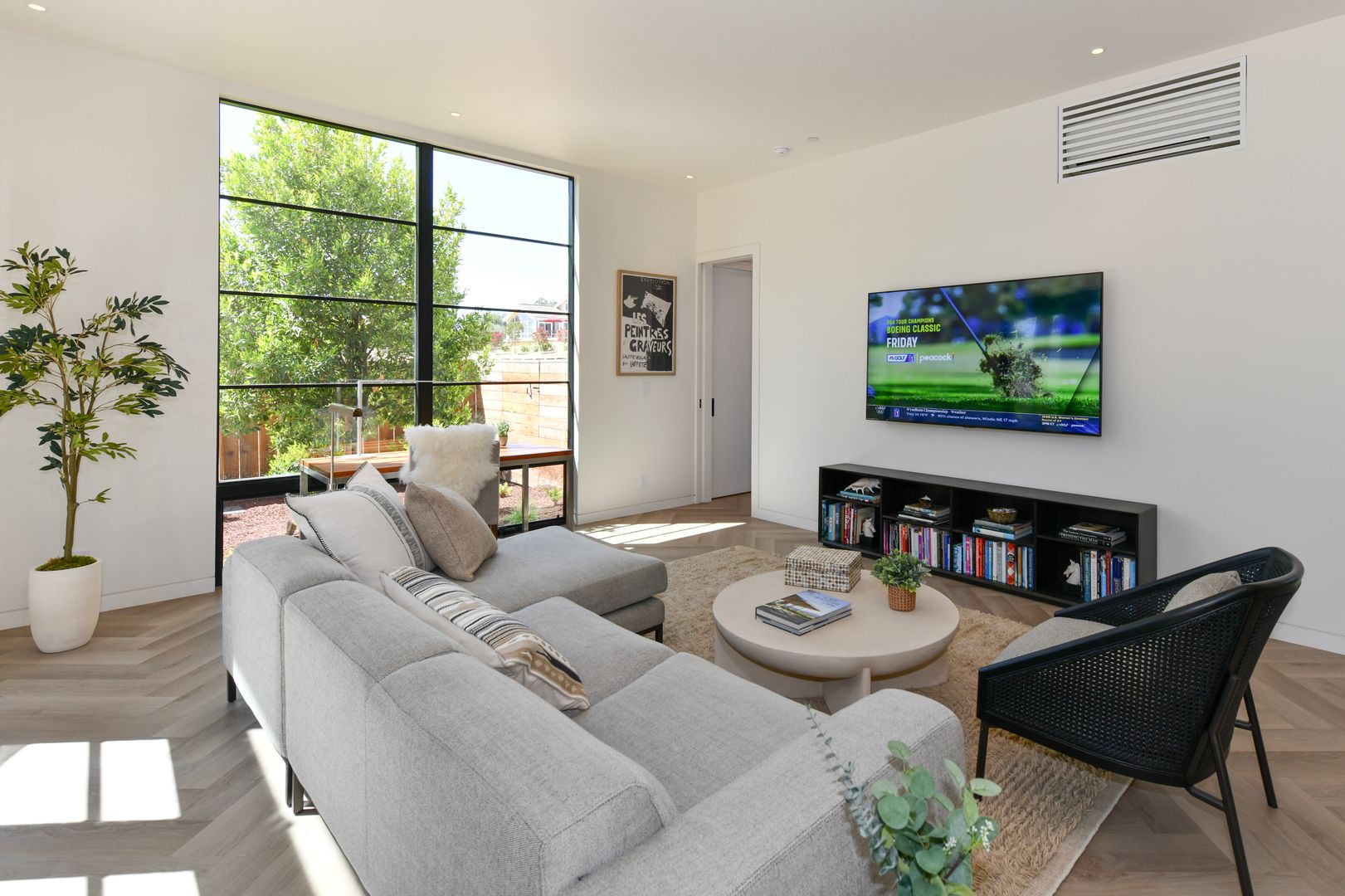 The sunlit living area welcomes you each morning with a warm and inviting atmosphere. Multiple sets of French doors open to an expansive private patio complete with dining table, lounge seating, BBQ, and firepit - ideal for alfresco dining or relaxing under the Napa stars.