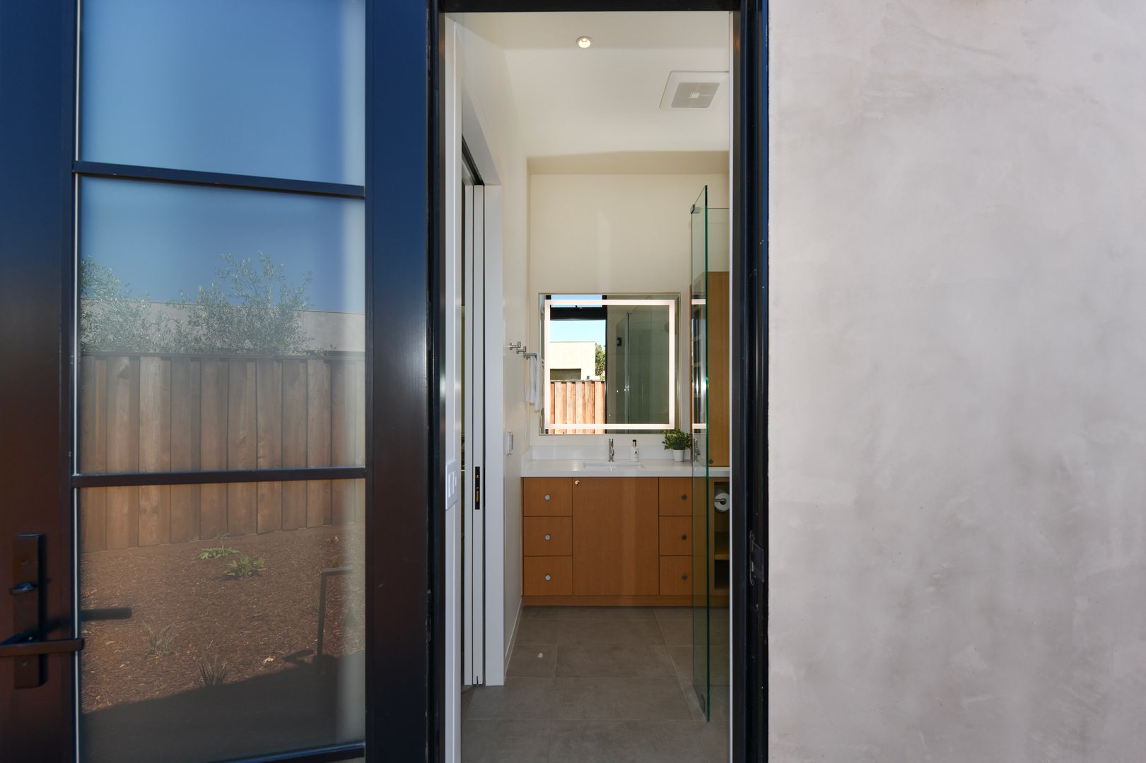 This unit shares same lot as owners unit (lot size 1.3 acres), a nine foot high privacy fence, fenced back yard & olive tree's separate the units to create seperation and privacy.