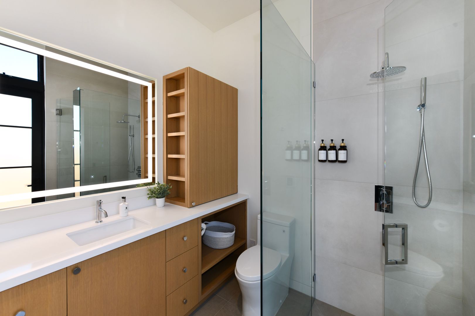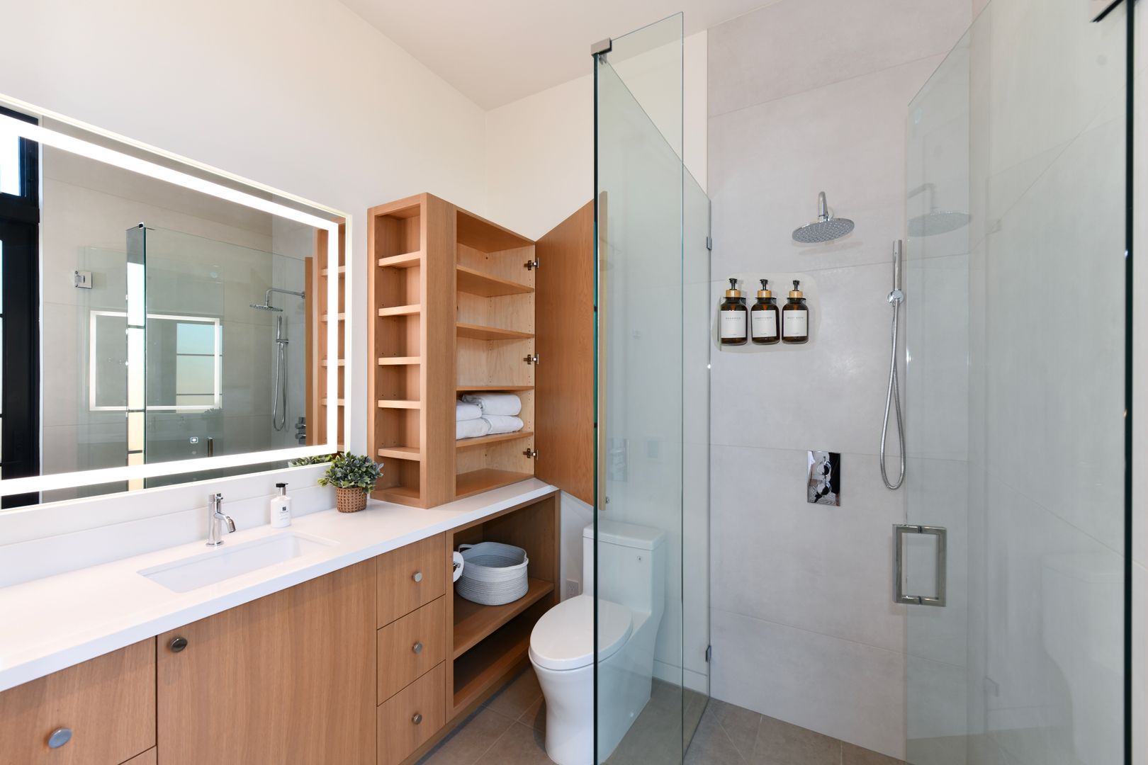 As you enter the private gated estate you'll be greeted by a picturesque, tree-lined drive accented with uplighting on olive and oak trees, ornamental shrubs and gravel-paved approach. Inside, both bedrooms feature king beds, en-suite bathrooms, and walk-in closets for your comfort and convenience.